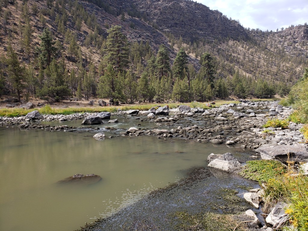It’s almost time for a funeral for the Wild & Scenic section of the Crooked River. It took a few days, but yesterday evening Ochoco Irrigation District and the Bureau of Reclamation reduced the river below Prineville Reservoir 12 cfs. Today I went to pay my respects and take some photos. It is so sad. Don’t forget, the river below the City of Prineville has been in even worse shape, running at 1 to 2 cfs for weeks*, at a time when over 80 spring chinook have been attempting to move up to spawning grounds. Today I left my office in Bend early and drove to the Prineville Reservoir and then down to the bottom of the Wild & Scenic section. Below are photos, videos, and some commentary.