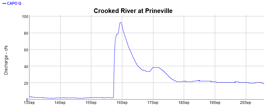 * Now that OID irrigation withdrawals have stopped, the river below the City of Prineville has actually come up a little. This may or may not last as other irrigation diversions are still legal.