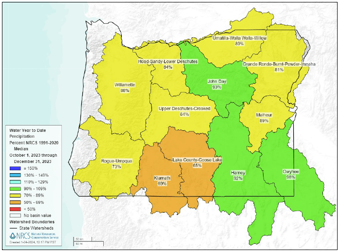 It’s premature to worry too much about the snowpack and it’s water content, but I think it’s time to start tracking the Natural Resources Water Conservation Service’s monthly water supply outlook report for Oregon. This is a comprehensive report with specific sections on the Upper Deschutes and Crooked River Basins. I’ll provide a few graphics, but I encourage you to at least scan the report. In short, precipitation and snowpack are well below normal for this time of year. As anyone who has lived in Central Oregon for a while knows, it’s foolish to predict the weather around here but we know we need multiple years of above average snow water equivalent to get back to what used to be considered normal.