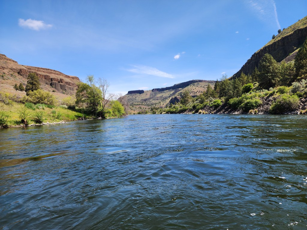 Yesterday was opening day on the Warm Springs to Trout Creek section of the Deschutes, so today I did a solo float in my pontoon to say hi. What a beautiful, productive day. Caught about 20 fish (I lost count) and had many more grabs. No sign of stoneflies yet but they should be appearing before long. We are so fortunate to have such a great river to enjoy. Get down there before the crowds!
