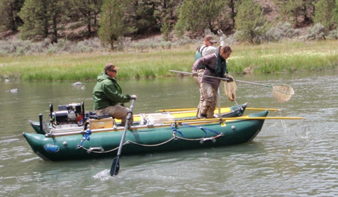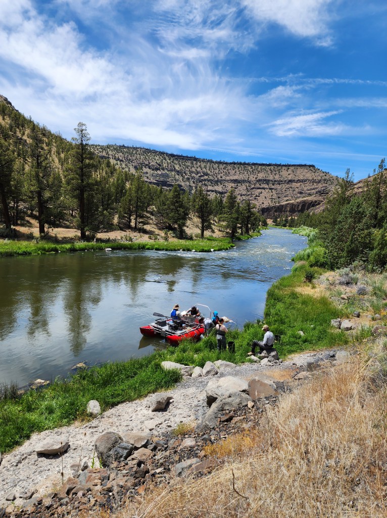 Every year ODFW electrofishes the Crooked River below Bowman Dam to estimate fish size, health, and abundance and they are looking for volunteer help June 21-23. Volunteers walk down the bank of the river while ODFW biologists float and shock the river.ย Fish near the boat are temporally stunned by the electric current and float to the surface where they are captured, counted, and measured.ย I first helped with this many years ago and it made me a far better angler on the Crooked and elsewhere. ย ย Even after decades of fishing experience and โreading the waterโ, I was amazed to see where fish were holding and in what numbers.ย ย If you are interested in helping, contact Tim Porter, Assistant District Fish Biologist in Prineville, atย (541) 447-5111 ext. 24 or Timothy.K.Porter@state.or.us.ย Let him know which day(s) you can help and he will get back to you with more detailed info.ย You need to be able to carry buckets of stunned fish back upstream to release them near where they were captured.ย The day usually lasts from 8:30 am until 2 pm.
