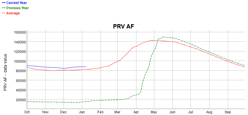 * The reservoir level is above average as most of the precipitation in the drainage this water year has been rain rather than snow, or snow that soon melted.