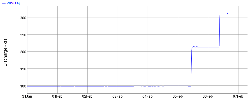 ORIGINAL POST: You may have already seen this chart showing the recent increase in flows out of Prineville Reservoir into the Crooked River. I took a look after receiving the notes this morning from the monthly water operations call that occurred two days ago (Feb. 5). You should expect high flows for some time. The Ochocos are experiencing an above average snow year. As a result, while Prineville Reservoir is 57% full as of this morning, it does not have remaining storage capacity to accept what is anticipated to be a large amount of runoff (perhaps 300% of normal) when temperatures increase in the spring or from a rain on snow event. The notes also point out that a developing La Nina could bring warmer temperatures and precipitation as rain. As a result, outflows into the Crooked River could be high for “extended” periods, likely for months. This is bad news for fishing this winter but good news for summer fishing and good news for the record number of steelhead that are currently attempting to make their way up the Crooked River.