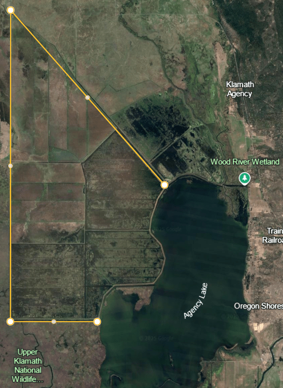 Oregon Public Broadcasting recently reported that portions of a levee defining the west side of Agency Lake have been removed, creating significant new aquatic habitat. I used Google Earth to create the image on the left, the entire area inside the yellow lines will eventually be under water.